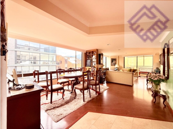 Espectácular apartamento en mejor sector de Santabarbara de 146 en exclusivo edificio de solo 9 propietarios. Sol de la mañana en área social, comedor independiente, chimenea hermosamente integrado a acogedora terraza área terraza (30 m2 incluidos ). Cocina con comedor independiente, cuarto y baño de servicio. Baño social completo, amplio cuarto de linos,  amplia habitación auxiliar con excelente clóset, amplia habitación principal con clóset doble, baño privado y salida a terraza, 2 parqueaderos independientes, amplio Depósito